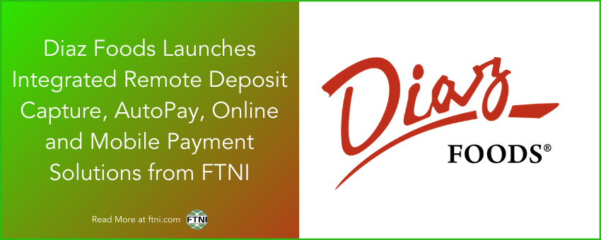 OMAHA, Neb. (PRWeb) September 23, 2019 – Financial Transmission Network Inc. (FTNI), a provider of industry-leading integrated receivables solutions, today announced Diaz Foods, one of the largest distributors of Hispanic food products in the United States, has launched its ETran Integrated Receivables platform to deliver the distributor with advanced Remote Deposit Capture (RDC), AutoPay, Online and Mobile Payment solutions.