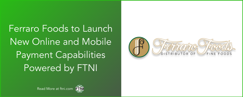 OMAHA, Neb. (PRWeb) April 2, 2019 – Financial Transmission Network Inc. (FTNI), a provider of industry-leading integrated receivables solutions, today announced Ferraro Foods, a family owned Italian Food distributor headquartered in Piscataway, New Jersey, has selected its Fully-hosted Online Payment Portal and Mobile App to deliver increased security, convenience and efficiencies across its Accounts Receivables (A/R) operations. FTNI and Ferraro Foods are on pace to launch these new services early in Q2 2019.