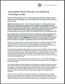 Strong Continued Adoption of FTNI’s Accounts Receivable Automation Platform Helps to Deliver FTNI with Food Logistics’ Annual Top Software and Technology Provider Award for a Seventh Time.