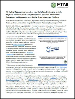 “The addition of FTNI’s AutoPay, Online and Mobile solutions represent an exciting opportunity for us to not only become more efficient in our A/R operations, but also improve the convenience, security and overall customer experience when making payments to MJ Kellner,” said Dave Rikas, COO at MJ Kellner. “These great new capabilities offer several new ways for our customers to remit payment, while also driving new operational efficiencies within our receivables organization—it really is the best of both worlds.”