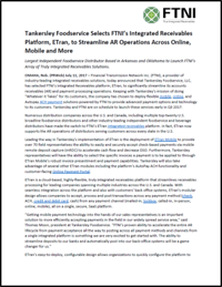 OMAHA, Neb. (PRWeb) July 11, 2017 – Financial Transmission Network Inc. (FTNI), a provider of industry-leading integrated receivables solutions, today announced that Tankersley Foodservice, LLC, has selected FTNI’s Integrated Receivables platform, ETran, to significantly streamline its accounts receivables (AR) and payment processing operations. Keeping with Tankersley’s mission of doing “Whatever it Takes” for its customers, the company has chosen to deploy flexible mobile, online, and Autopay ACH payment solutions powered by FTNI to provide advanced payment options and technology to its customers. Tankersley and FTNI are on schedule to launch these services early in Q3 2017.